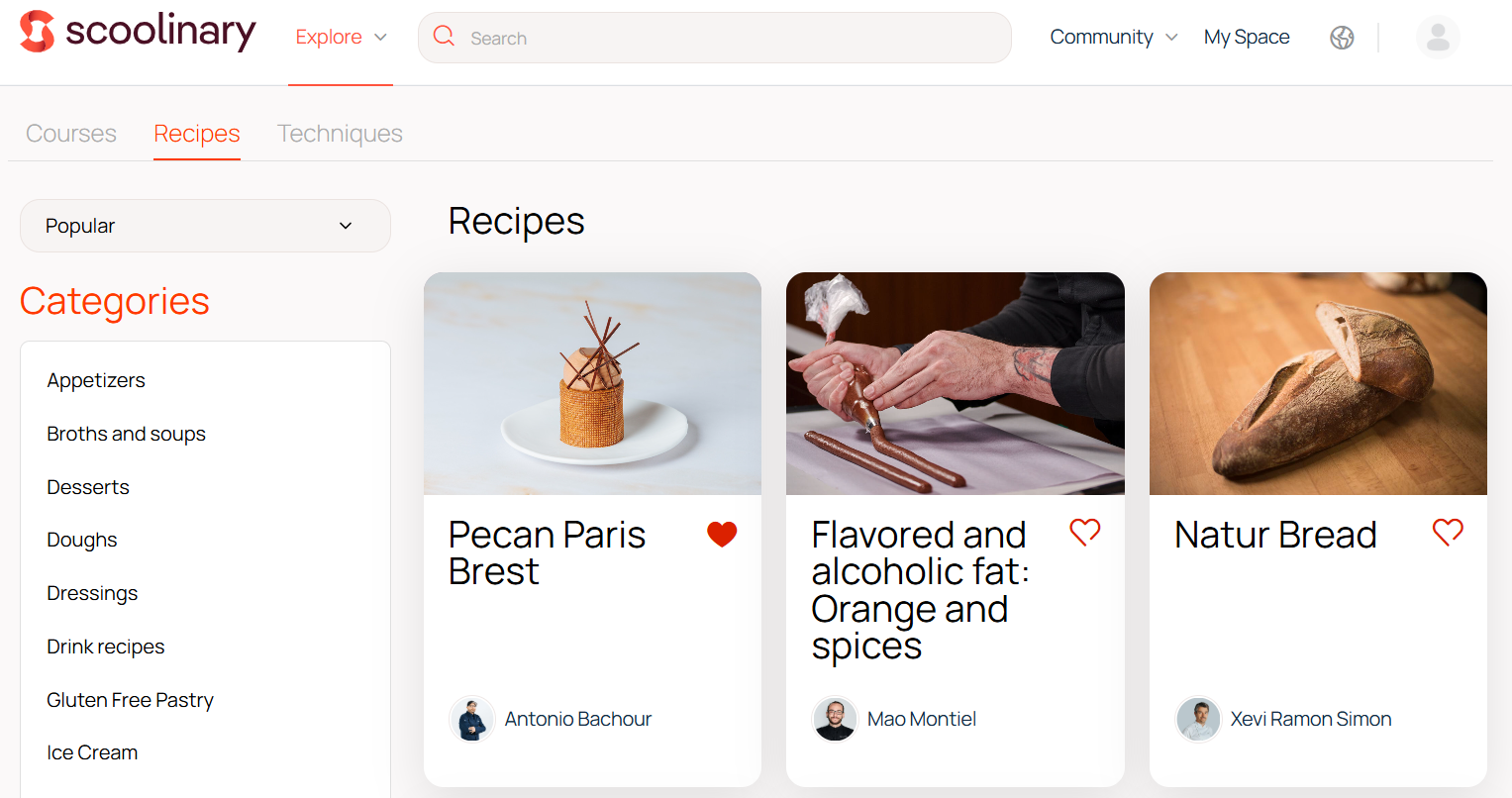 To save a recipe to “My Space,” simply click the heart icon on the recipe you want to keep.