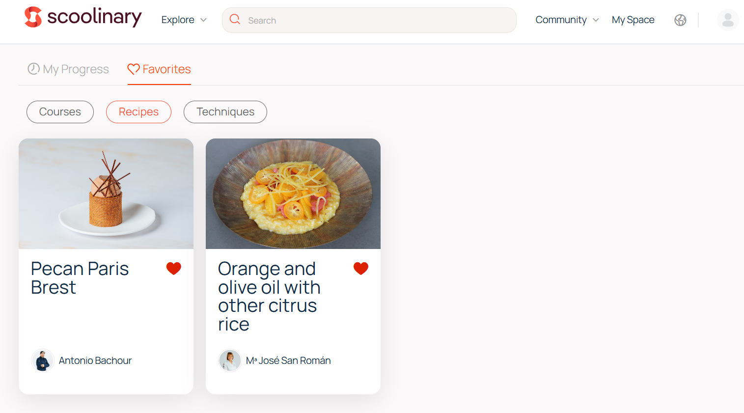 You will then find the Recipe under "My Space" > "My Progress" > "My Favorites" > "Recipes"